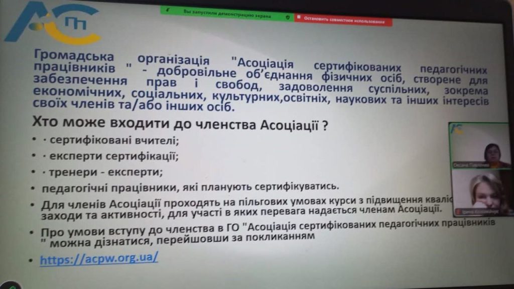 Оксана Павленко, керівник відокремленого підрозділу Асоціації у Житомирській області мала можливість виступити перед учасниками навчання кандидатів у експерти з вивчення практичного досвіду роботи учасників сертифікації у 2026 році ( вчителі початкових класів) в Житомирській області, яке проводило Управління ДСЯО в Житомирській області. Темою виступу була інформація про діяльність ГО АСОЦІАЦІЯ СЕРТИФІКОВАНИХ ПЕДАГОГІЧНИХ ПРАЦІВНИКІВ . Щира подяка пані Ірині Коломійчук , керівниці курсів, за надану можливість.